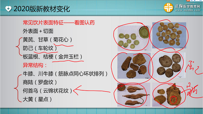 第六、七、八周 | 第四章 | 约占30分 | 预计重点药材为:(医学教育网原创,转载请注明出处!) ①根及根茎类中药:狗脊、绵马贯众(入药部位)、细辛(图片)、牛膝(图片)、防己(图片)、延胡索(图片)、板蓝根(产地)、川芎、天花粉(图片)、川贝母; ②茎木类中药:大血藤(图片)、鸡血藤、沉香; ③皮类中药:桑白皮、厚朴、杜仲; ④叶类中药:番泻叶(图片、入药部位); ⑤果实及种子类中药:五味子、山楂、补骨脂; ⑥全草类中药:荆芥、薄荷、穿心莲; ⑦矿物类中药的成分与条痕色。重点药材:朱砂、自然铜(图片)、赭石、石膏。 |