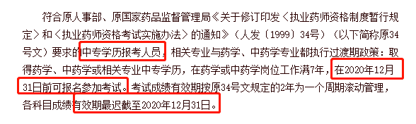 因此没有通过2020年执业药师的中专考生,今年就无法再报考2021年执业药师考试了!当然如果选择提升学历后继续报考的话,第一学历为药学、中药学专业的考生,其工作年限累计足够就可以马上报考了!