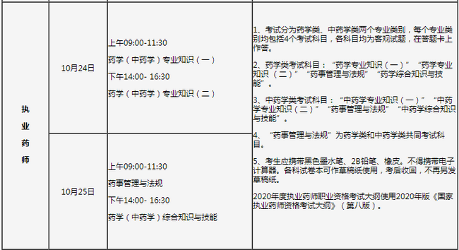 2020年执业药师考试时间:10月24、25日。