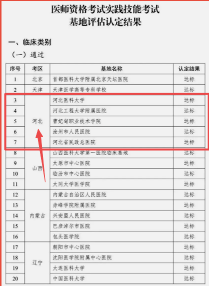 2020年河北省执业医师技能考试实践技能考试基地共5个,具体名单如下: