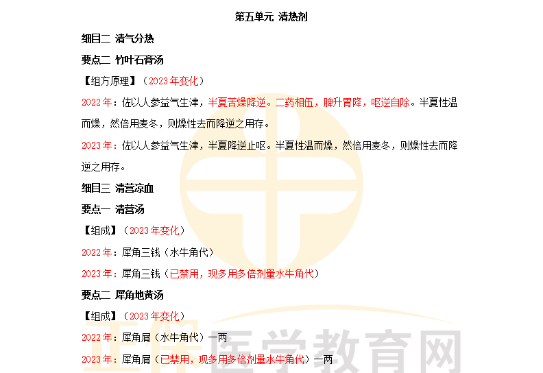 2023中西医内科主治医师考试《方剂学》教材公布了,经医学教育网专业人员校对,发现如下变化内容:
