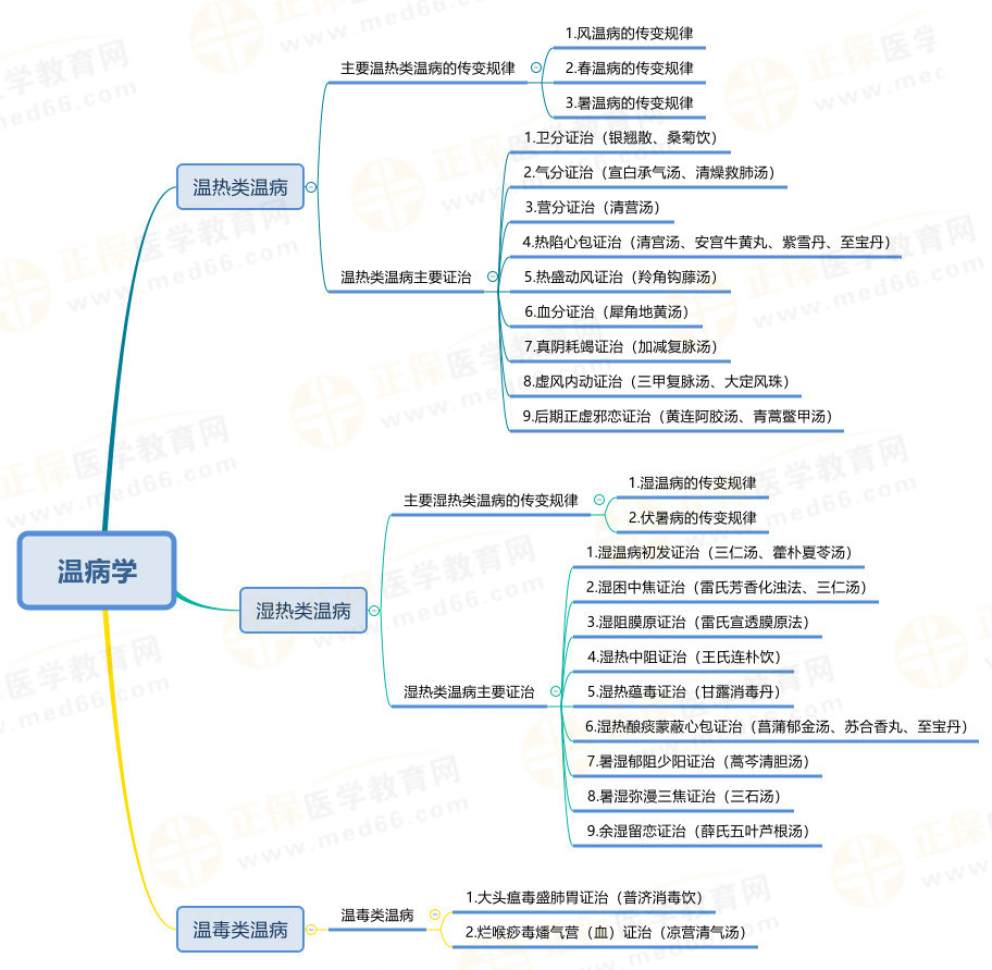 中西医内科主治医师考试会涉及“温病学”的 内容,为了帮助各位2024年考生顺利复习,医学教育网为大家整理“【温病学】知识点地图”如下: