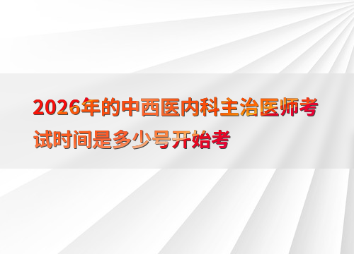 2026年中西医内科主治医师考试定于4月26日举行,全天连续进行四个科目的考试,无休息时间。