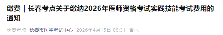 吉林长春2026年中西医执业医师技能缴费开始!注意缴费方式!以下为吉林长春考点官方提醒,请相关考生仔细查看,按时完成技能缴费!