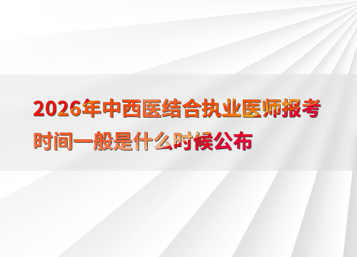 2026年中西医结合执业医师考试报名时间预计在1月至2月期间,参考近年安排(如2025年为2月8日至2月21日),建议考生关注国家医学考试网公告,提前准备材料。