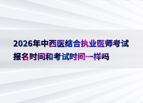 2026年中西医结合执业医师考试报名时间预计在1月至2月,而考试时间通常安排在每年的8月,两者明显不同。