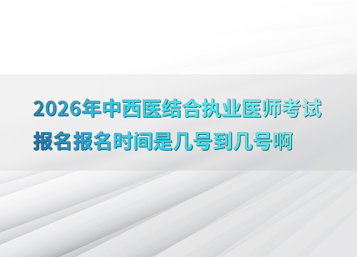2026年中西医结合执业医师考试报名预计在1月至2月进行,具体日期参考往年安排:2025年为2月8日至2月21日,2024年为1月22日至2月4日。