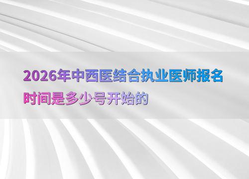 2026年中西医结合执业医师考试报名预计在1月至2月期间进行,具体日期以国家医学考试网官方通知为准。