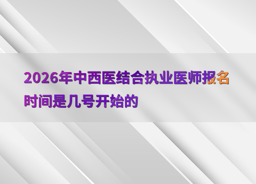 2026年中西医结合执业医师考试报名预计在1月至2月期间启动,具体日期建议关注国家医学考试网公告。