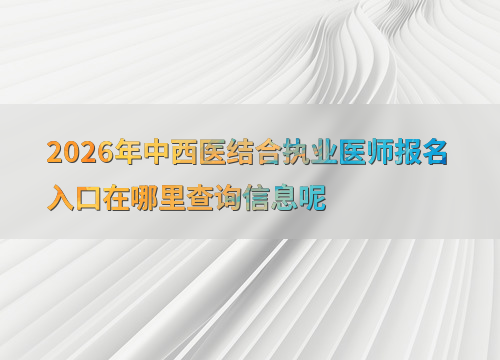 2026年中西医结合执业医师考试报名预计在1月至2月进行,考生可通过国家医学考试网(www.nmec.org.cn)完成网上报名。