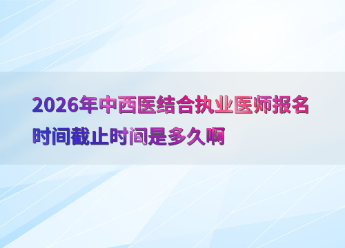 2026年中西医结合执业医师考试报名时间为1月29日10时至2月11日24时,逾期将无法补报。
