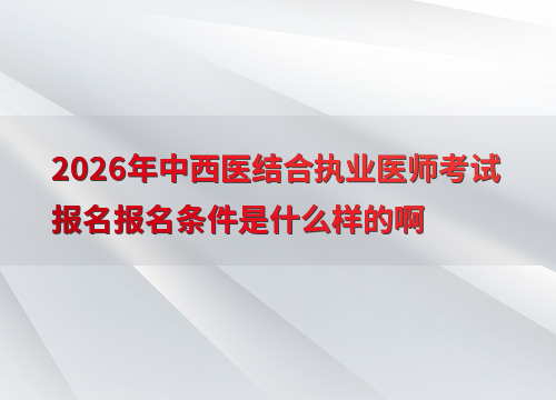 2026年中西医结合执业医师考试报名条件明确:具有高等学校中西医结合专业本科及以上学历,毕业后在医疗、保健机构试用期满一年的人员可报考。