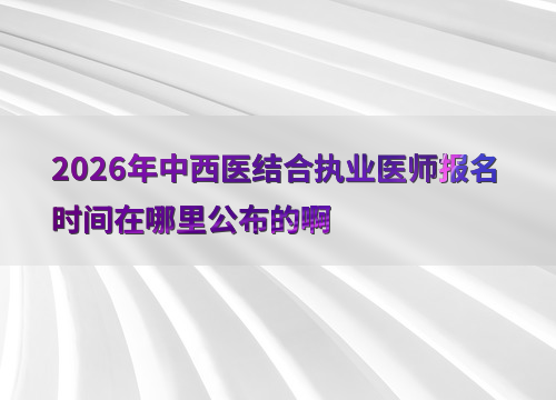 2026年中西医结合执业医师考试报名时间已明确: