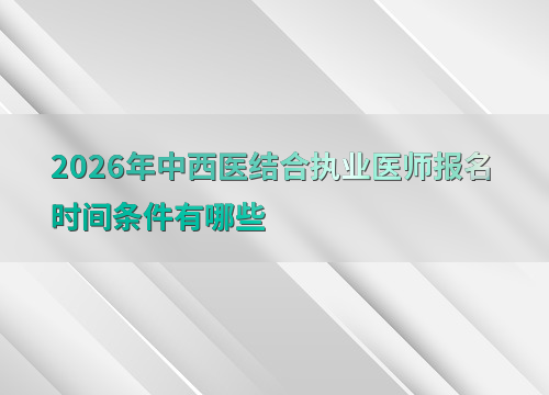 2026年中西医结合执业医师考试报名时间为1月29日10时至2月11日24时,网上报名完成后需在2月27日至3月12日完成现场审核。