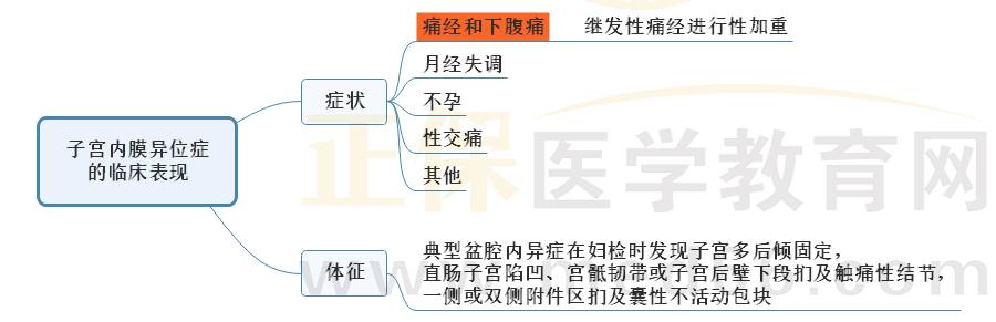 以上为“【中西医妇科学】科目——2022年中西医执业医师考点思维导图:子宫内膜异位症的临床表现”全部内容,由医学教育网小编小编整理,更多信息请随时关注医学教育网。