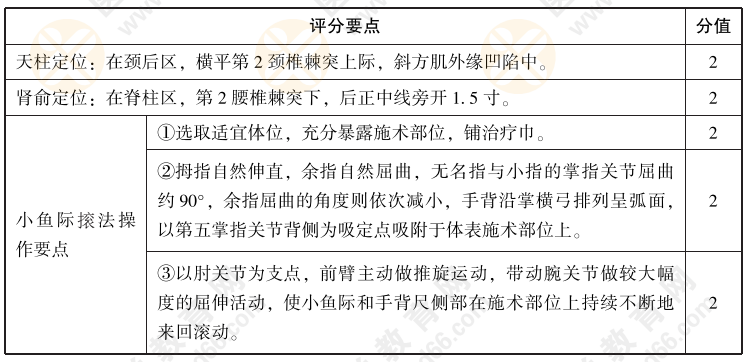 以上为“2022年中西医执业医师实践技能【中医操作】06号题:试述天柱、肾俞穴定位,并演示小鱼际滚法的操作”全部内容,由医学教育网小编整理,更多信息请随时关注医学教育网!