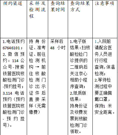 3.114电话预约(预约铁营医院核酸检测门诊-预约挂号)。