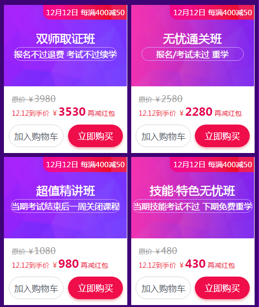 三、优惠选购课程:12月8日-12月12日(每满400-50)优惠享不停。