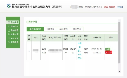 这样就完成提交境外学历学位认证了,资料无误的话,20个工作日左右就能收到审核通过发来的电子证书.