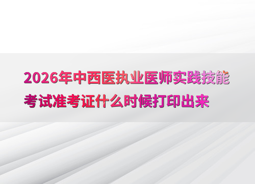 2026年中西医执业医师实践技能考试定于6月6日至14日举行,准考证打印时间因地区而异,通常在考前1-2周开放。