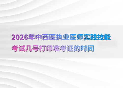 2026年中西医执业医师实践技能考试定于6月6日至14日举行,准考证打印时间因地区而异,通常在考前1-2周开放。