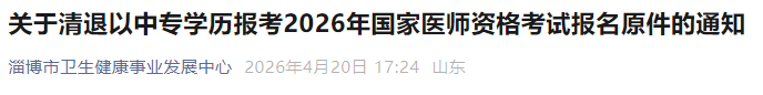 以中专学历报考2026年国家医师资格考试的报名原件现开始清退,请各考生按以下要求尽快领取: