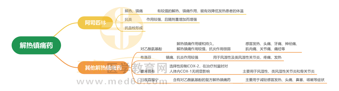 2024年中西医助理医师考试中,药理学出题侧重点在药物作用的基本规律,各类药物的作用机制和临床应用。学习的时候需要掌握一定的学习方法,死记硬背对此学科来说非常困难。医学教育网小编为大家整理“解热镇痛药”考点思维导图供大家复习:
