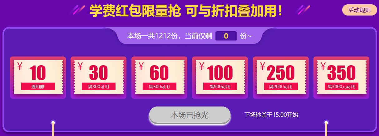 5.活动期9折优惠支持与学费红包优惠券同时使用,学费红包使用规则如下: