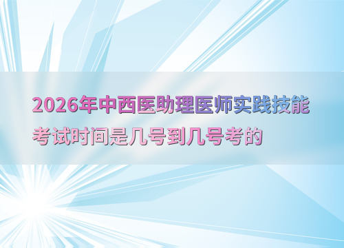 2026年中西医助理医师实践技能考试时间为6月6日至14日,具体考试日期和地点以准考证信息为准。