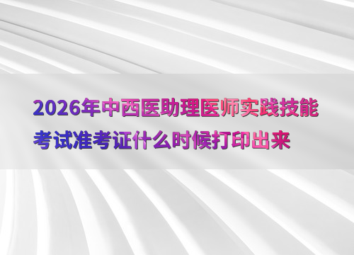 2026年中西医助理医师实践技能考试定于6月6日至14日举行,准考证打印时间因地区而异,通常在考前1-2周开放。