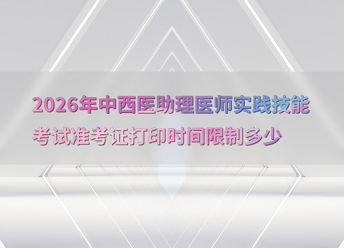 2026年中西医助理医师实践技能考试时间为6月6日至14日,准考证打印时间因地区而异,通常在考前1-2周开放。
