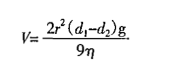 其中V=沉降速率;r=微粒半径;η=分散介质的黏度;d1=分散介质的密度;d2=分散介质的密度;g=重力加速度。