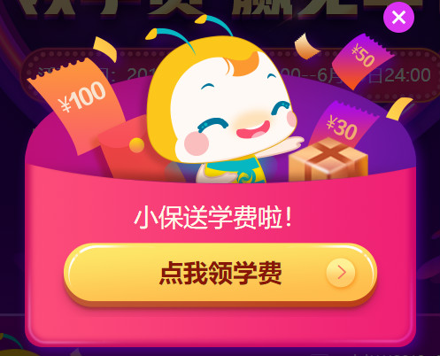 可爱小保为你送上学费!最高可达100元!(可与满减共同使用)