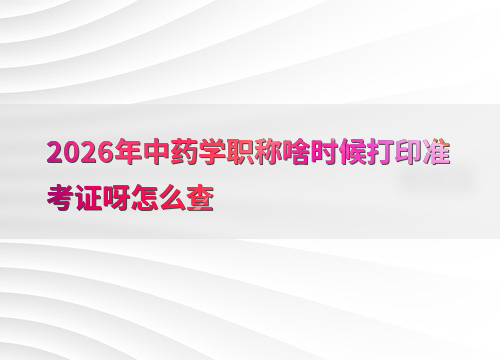 2026年中药学职称准考证打印时间为4月1日至4月26日,考生需登录考生管理平台下载打印。