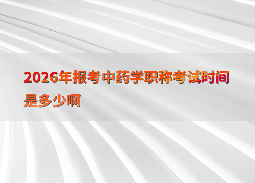2026年中药学职称考试时间安排