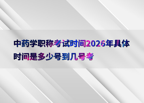 2026年中药学职称考试定于4月26日举行,全天连续进行四个科目考试,无休息时间。