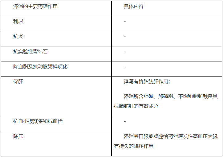(1)泽泻的主要药理作用:
