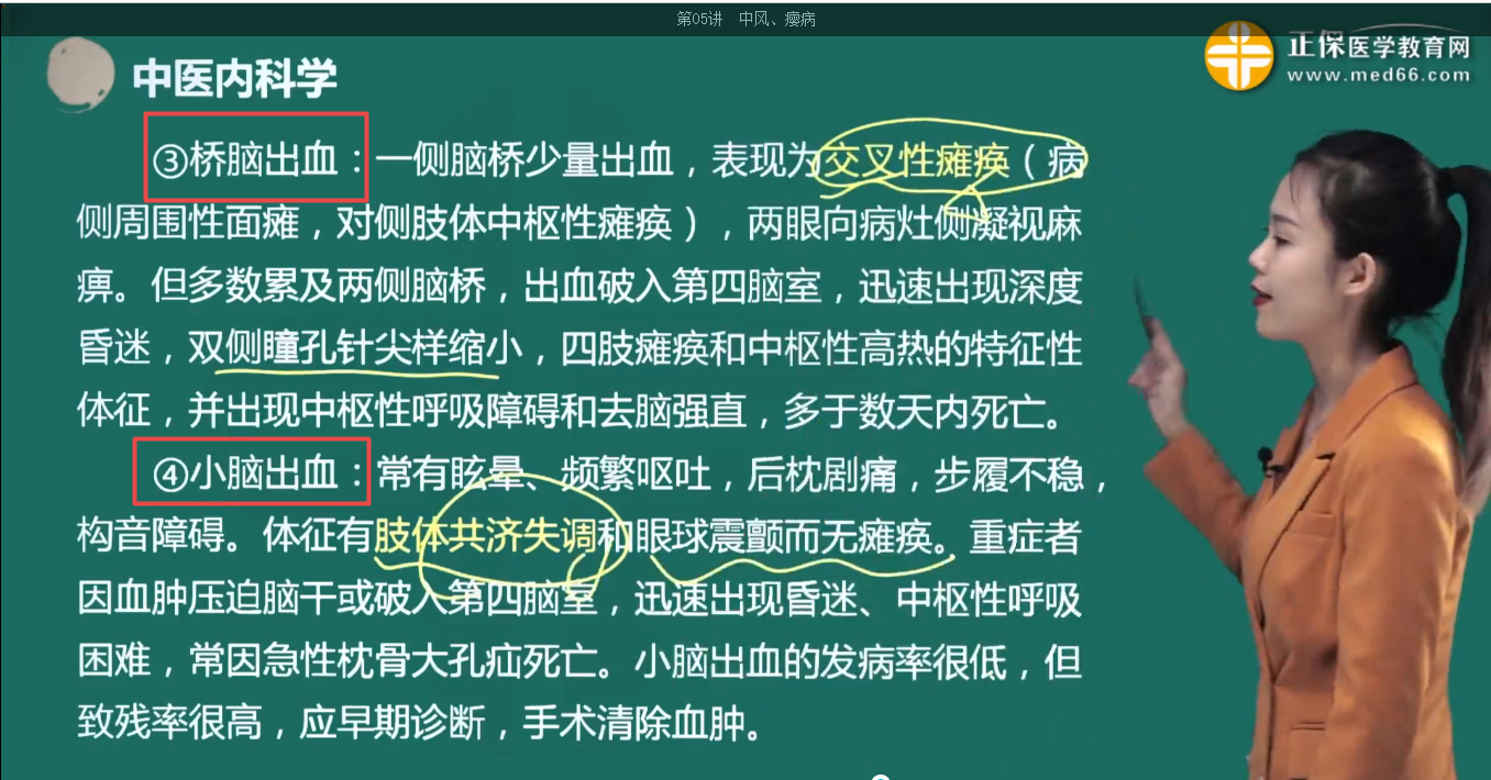 2023中医内科主治医师考试考点1:桥脑出血与小脑出血的症状