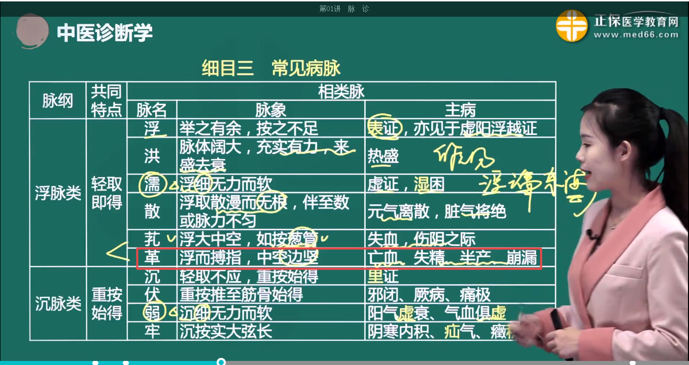 革脉:浮而搏指,中空边坚。多见于亡血、失精、半产、崩漏。