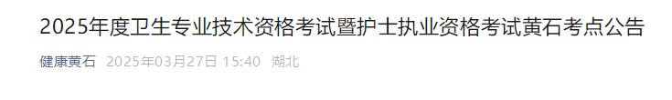 根据国家卫生专业技术资格考试办公室和国家护士执业资格考试委员会办公室工作安排,现将2025年度卫生专业技术资格考试暨护士执业资格考试黄石考点有关事项公告如下:
