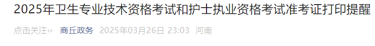 【河南】2025年卫生专业技术资格考试和护士执业资格考试准考证打印提醒