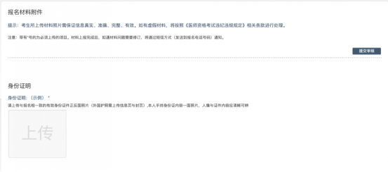 注意:这里显示的内容,是医师资格考试所有可能需要的材料列表,考生根据自己的个人情况和报名要求,上传所需的考试材料图片。
