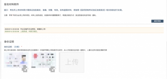 考生根据自己的个人情况,按照报名要求,将所需要的材料图片上传完成后,点击最上方的提交审核按钮。