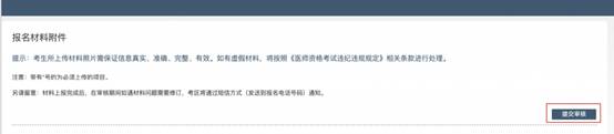 考生按常规报名流程进入国家医学考试考生系统系统,查看自己的报名信息,在报名信息处,点击“上传相关材料”按钮,按页面提示进入报名材料上传界面。
