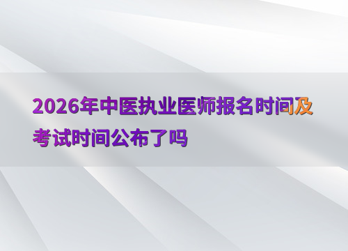 2026年中医执业医师考试报名时间预计在1月至2月期间进行。