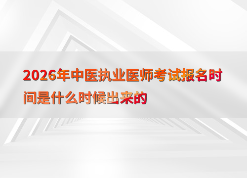2026年中医执业医师考试报名时间预计在1月至2月期间进行。