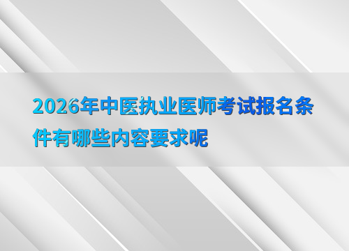 2026年中医执业医师考试报名条件分为两类:一是具有规定学历的考生,二是师承或确有专长人员。