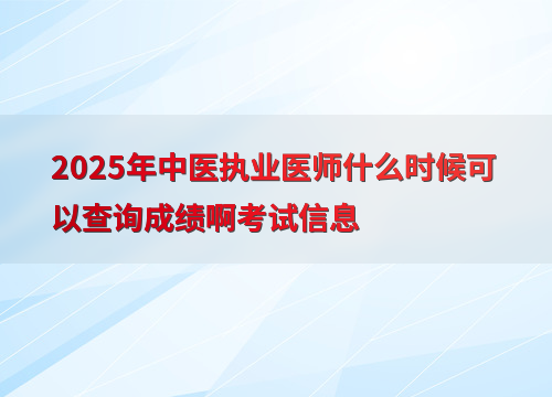 2025年中医执业医师综合考试成绩预计在9月公布,参考近年数据,考后约1个月可查分。