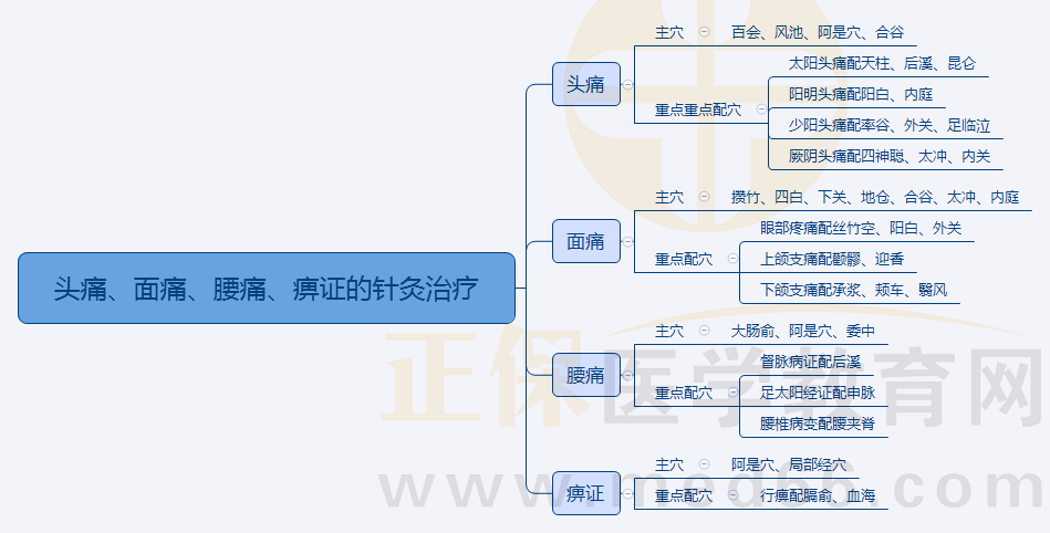 以上为“针灸学:头痛、面痛、腰痛、痹证的针灸治疗——2022年中医医师考试思维导图考点”全部内容,由医学教育网小编整理,更多信息请随时关注医学教育网!