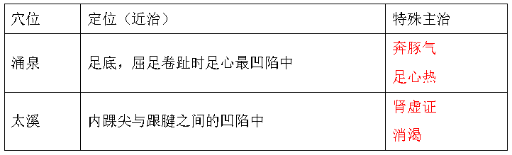 9.足少阴肾经穴位表